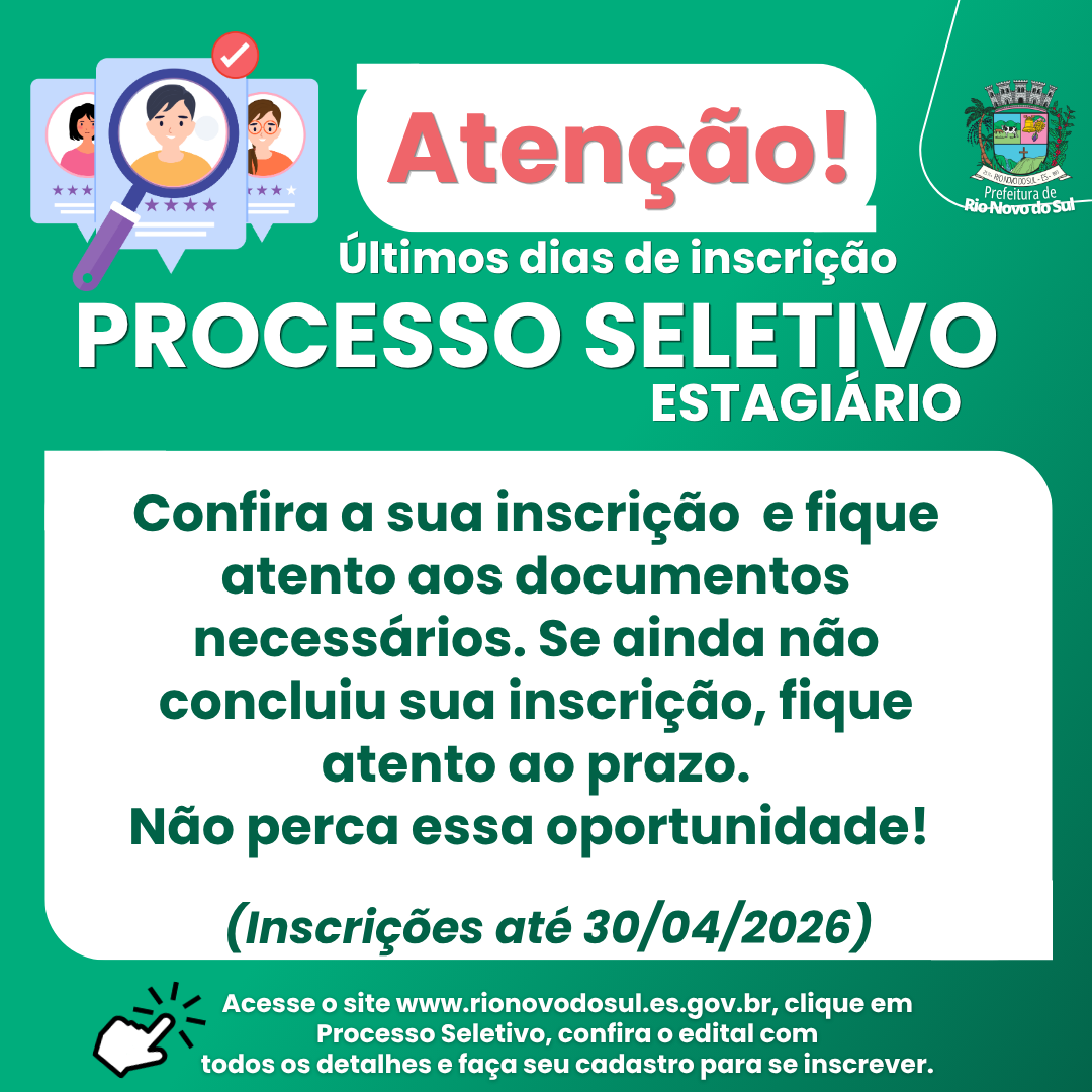 ATENÇÃO! Fique atento ao prazo final de inscrição para processo seletivo de estagiário. Confirme se os documentos necessários foram enviados ou se ainda não finalizou, reveja a situação.